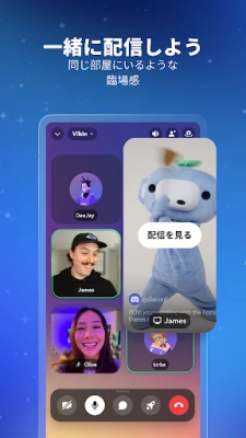 会話に命を吹き込みましょう。Discordでは、オリジナルのカスタム絵文字、スタンプ、効果音を駆使して、あなたの個性を豊かに表現できます。アバターやカスタムステータスでプロフィールを飾り、会話にさっそうと飛び込んでください。さらに、Discordの誇る高品質かつ低遅延のストリーミング機能は、友人と同じソファでくつろいでいるかのような臨場感を創り出します。ゲームを一緒にプレイしたり、お気に入りの番組を鑑賞したり、はたまた宿題を並行して進めたり。どんな瞬間も、隣にいるかのように分かち合えます。