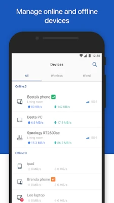 DS routerの包括的な機能群は、ネットワーク管理のあらゆる側面をカバーします。まず、そのリモート管理機能により、どこにいても自宅のルーター設定を柔軟に調整できます。また、視覚的なネットワークマップは、メッシュWi-Fiシステム全体の接続状態を分かりやすく表示し、接続デバイスごとのリアルタイムトラフィックを詳細に監視することが可能です。さらに、特定のデバイスにインターネットの優先順位を割り当てて帯域幅を最適化したり、メインネットワークから完全に独立したゲストWi-Fiを簡単に設定して、セキュリティとプライバシーを確保しながら来訪者に快適なインターネットアクセスを提供できます。