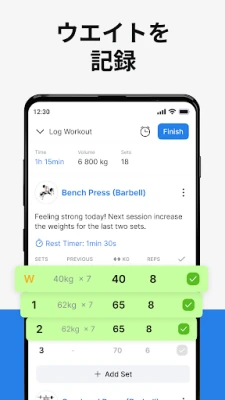 Hevyは、あなたのフィットネスジャーニーをサポートする無料のトレーニング記録アプリです。毎日の運動を詳細に記録し、成長度合いを視覚的に追跡することで、効果的に目標達成を促進し、より強い自分を目指すことができます。